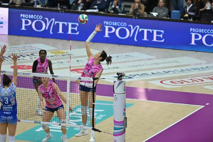 在北京时间3月16日结束的2025-2026赛季女排意甲半决赛首场对决中,卫冕冠军科内利亚诺在主场一度0-2落后的险境下,最终连扳3局,总比分3-2大逆转强敌诺瓦拉。